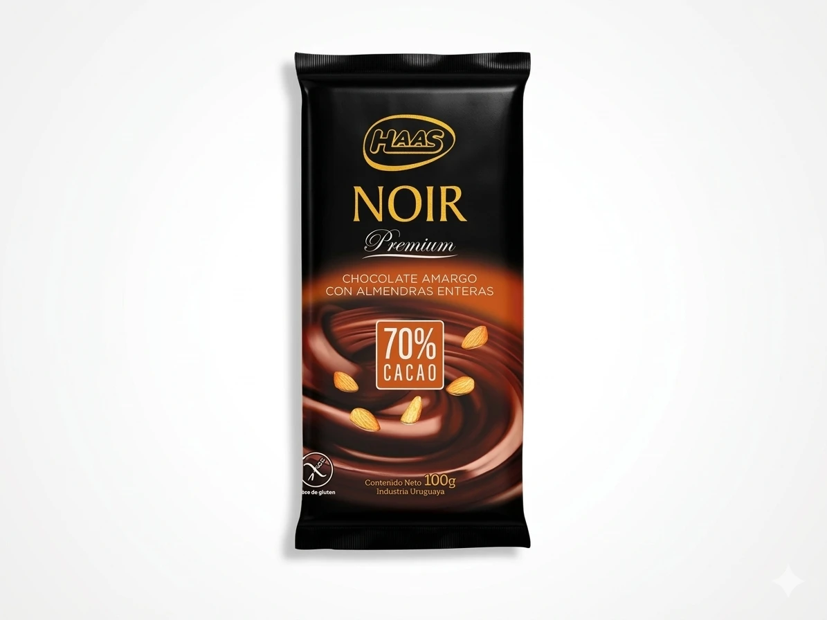 Chocolate Amargo con Almendra Enteras 70% de Cacao HAAS Noir Premium 100 gr